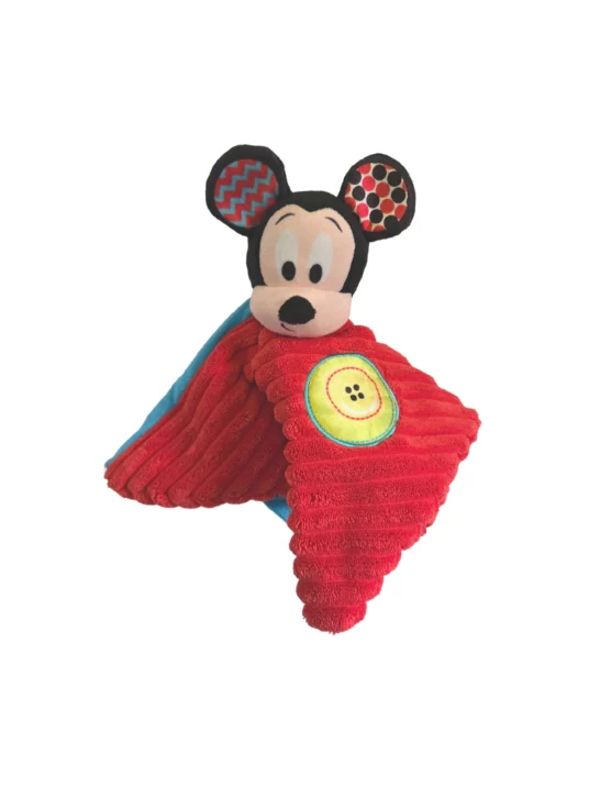 Dès le premier regard, ce doudou Mickey Mouse séduit par son design attendrissant et fidèle au célèbre personnage Disney. En effet, il arbore les grandes oreilles emblématiques de Mickey. Ainsi que son doux sourire brodé. Rendant cette peluche encore plus attachante. De plus, grâce à son format mouchoir léger et facile à manipuler, votre bébé pourra aisément l’attraper et le câliner à volonté. Par ailleurs, les petites étiquettes et les coins texturés sont spécialement conçus pour stimuler la motricité fine et le développement sensoriel des tout-petits .Leur offrant ainsi une expérience ludique et enrichissante.